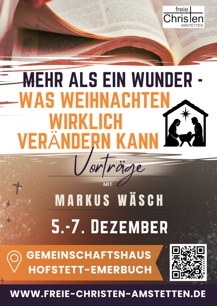 Vom 5.- 7. Dezember 2025 war Markus Wäsch bei uns in Hofstett im Gemeinschaftshaus. Es ging um drei interessante Themen, rund um das Motto: „Mehr als ein Wunder – was Weihnachten wirklich verändern kann“: