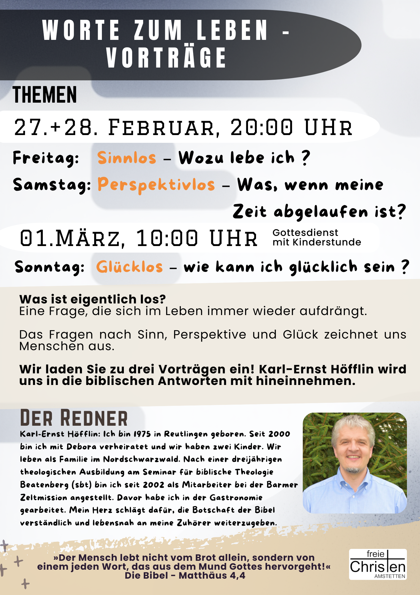 - Freitag, 27. Februar, 20:00 Uhr: Sinnlos – wozu lebe ich?